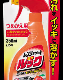 「レンジまわりのルック スプレー つめかえ用 350ml」は、しつこい油汚れを素早くラクに落とすレンジまわり用強力洗剤です。「W洗浄メカニズム」で、しつこい油汚れをすばやく溶かして落とします。ベタベタ汚れを溶剤成分が乳化し、カチカチ汚れをアルカリ剤成分が溶解します。飛び散りが少なく、ふだんのお掃除にも気軽にご使用できます。洗剤特有の不快なニオイが残りません。つめかえ用。350ml入り。