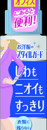「お洋服のスタイルガード しわもニオイもすっきりスプレー 携帯用 70ml」は、しわとり・消臭はもちろん、除菌・防臭までできるシワ伸ばしスプレーです。洗濯やクリーニングが頻繁にできない衣類のしわとりに。衣類についた汗やタバコ、焼肉のニオイもすっきり消臭。また、除菌効果で衣類を清潔にします。抗菌防臭効果で汗臭の発生を抑えます。爽やかなデオドラントグリーンの香り。衣類に香りは残りません。