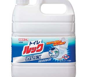 「業務用 トイレルック 4L」は、ふちウラの尿石までとかして落とすトイレ用洗剤です。トローリ濃い液だから狙ったところにピッタリはりつき、効果的です。除菌も出来ます(全ての菌を除菌するわけではありません)。標準使用量では浄化槽の機能(微生物)への影響はありません。塩素系成分を使っていません。万一、塩素系洗剤と混ざっても、「グリコール酸」が危険な塩素ガスの発生を抑えるので安心です。爽やかなハーブの香りで、イヤなニオイもスッキリ。