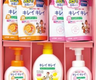 「キレイキレイ ギフトセット LKG-30」は、『キレイキレイ』のボディソープとハンドソープが入ったギフトセットです。清潔デオドラント成分「イソプロピルメチルフェノール(薬用成分)」のはたらきで、気になる汗や体のニオイを防ぎ、お肌を清潔に保つデオドラントボディシャンプー「キレイキレイ せいけつボディソープ わくわくレモン&オレンジの香り」、きめ細かな泡が汚れをすみずみまでキャッチ、しっかりと落とす薬用泡ハンドソープ「キレイキレイ 薬用泡ハンドソープ」(ポンプ・つめかえ)入り。医薬部外品。