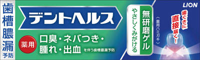 「デントヘルス 薬用ハミガキ無研磨ゲル 28g」は、『研磨剤無配合』で弱ってきた歯ぐきもやさしくみがける歯磨き粉です。歯ぐきの退縮・炎症を伴う歯槽膿漏を防ぐ薬用ハミガキです。医薬部外品。