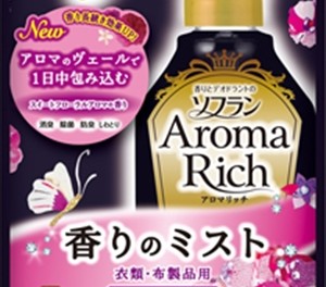 「香りとデオドラントのソフラン アロマリッチ 香りのミスト ジュリエットの香り つめかえ用 180ml」は、アロマヴェールで柔軟剤アロマリッチとおそろいの香りが1日中長続きする衣類・布製品用香りづけミスト(つめかえ用)です。毎回は洗わない衣類や、なかなか洗えないカーテン・寝具などにスプレーするだけで、アロマリッチの奥深い香りが楽しめます。気になるニオイをしっかり消臭し、香りを楽しめます。除菌・抗菌防臭効果で衣類を清潔に保ちます。しわとり効果もあります。ジュリエット:月夜に恋人を待つロマンティックな気分をイメージしたスイートフローラルアロマの香り。