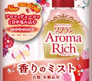 「香りとデオドラントのソフラン アロマリッチ 香りのミスト アニーの香り つめかえ用 180ml」は、アロマヴェールで柔軟剤アロマリッチとおそろいの香りが1日中長続きする衣類・布製品用香りづけミスト(つめかえ用)です。毎回は洗わない衣類や、なかなか洗えないカーテン・寝具などにスプレーするだけで、アロマリッチの奥深い香りが楽しめます。気になるニオイをしっかり消臭し、香りを楽しめます。除菌・抗菌防臭効果で衣類を清潔に保ちます。しわとり効果もあります。アニー:かわいらしく愛らしい女性をイメージした、スイーツベリーアロマの香り。