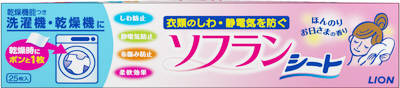 「ソフラン 乾燥機用 25枚入」は、着用時だけでなく、乾燥機から衣類を取り出す時の静電気も防止するシート状柔軟剤。柔軟成分が乾燥機中の衣類を滑りやすくし、摩擦や絡まりを抑え、毛玉・ケバ立ち・繊維の傷みを防ぎます。さらに脱水時についたシワもほぐすので、仕上がりはシワが少なく、アイロン掛けも楽に。外で干したようなお日さまの香りです。
