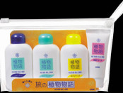 「旅の植物物語 トラベルセット」は、シャンプー・コンディショナー・ボディソープ・洗顔フォームのアメニティセットです。かわいいミニ容器に入っています。3泊4日程度の旅行に適しています。